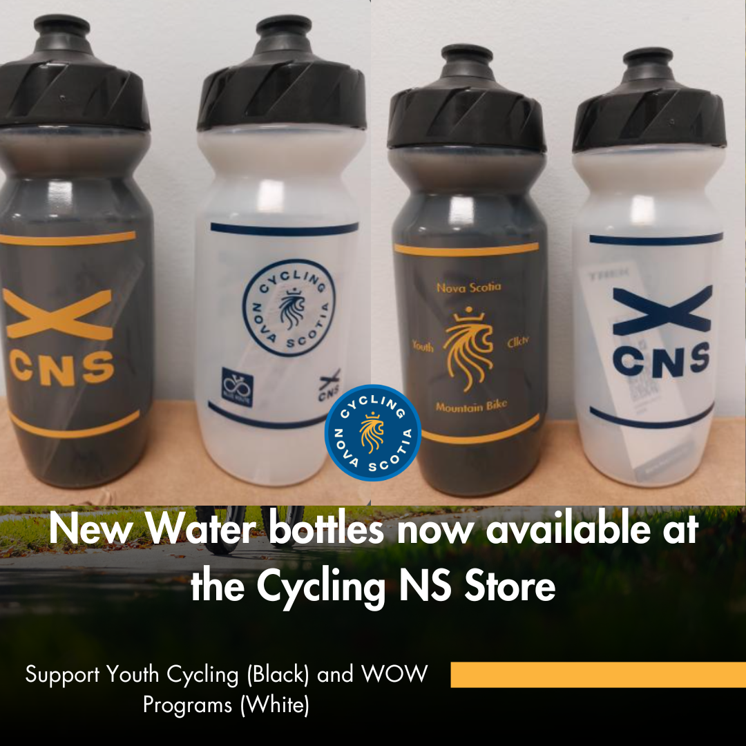 New Cycling NS Water Bottles. Black bottles, the NS Youth Collective bottles, go to support the Cycling NS Development fund which helps develop youth cycling. Clear bottles supports general programs at Cycling NS. https://ccnbikes.com/#!/events/cycling-nova-scotia-store