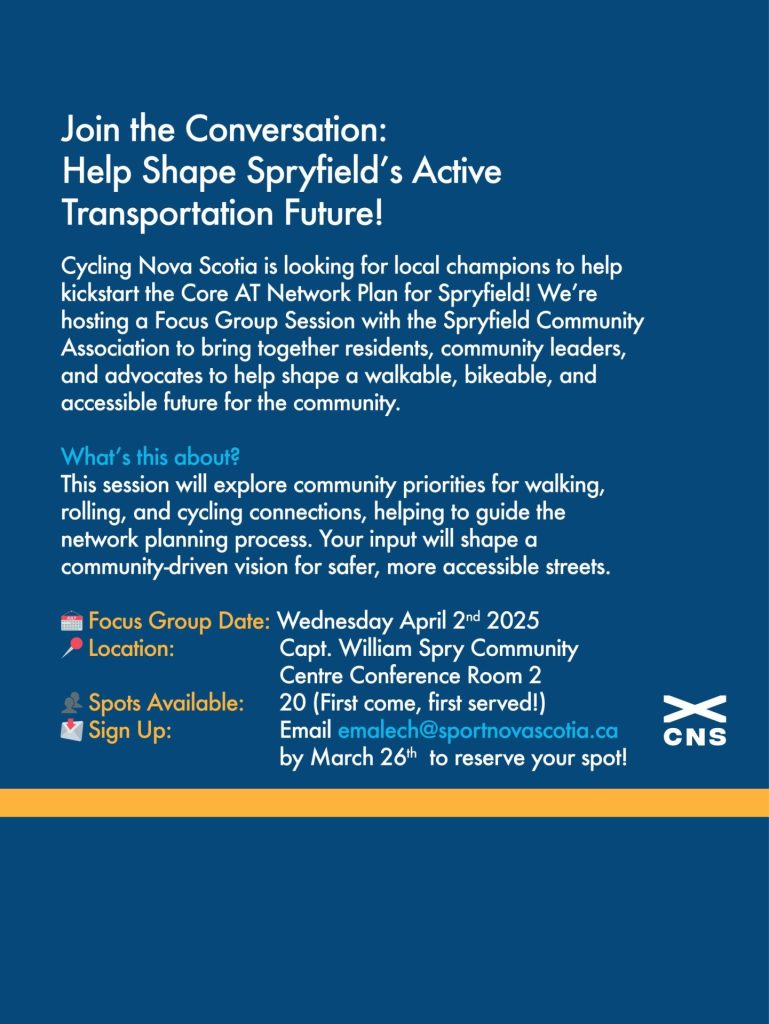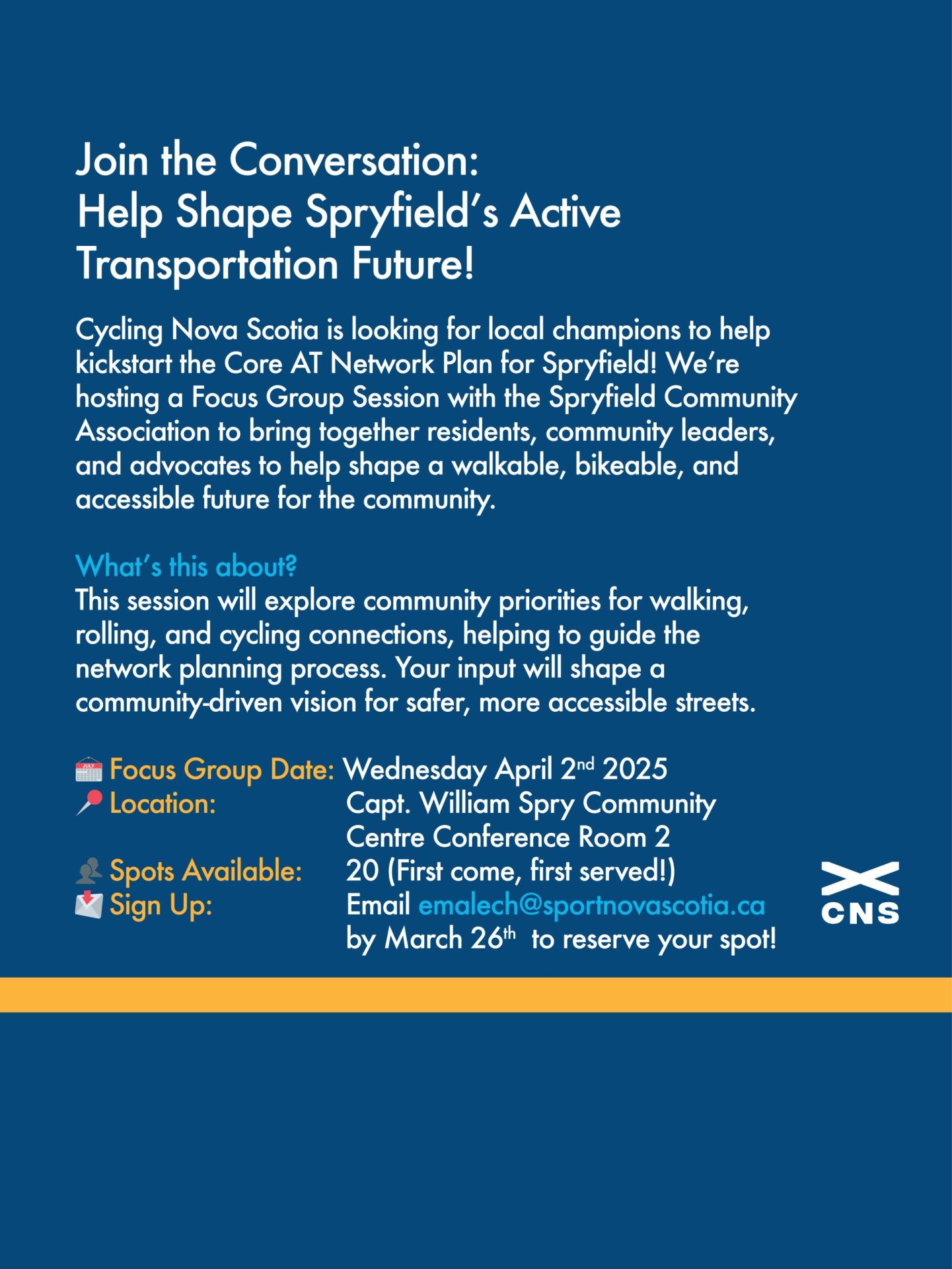 Cycling Nova Scotia is partnering with the Spryfield Community Association to improve walking, rolling, and cycling connections!