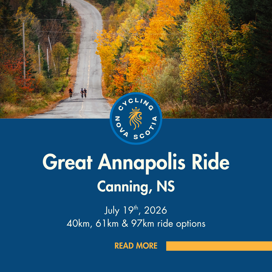 Cycling NS proudly presents the 2026 Great Annapolis Ride being held in Canning, NS. There will be three beautiful ride options: